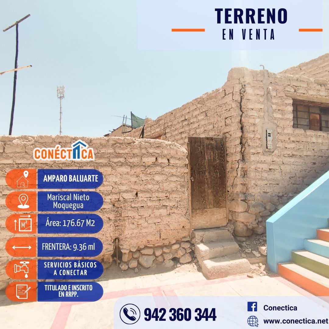 ¡Oportunidad de inversión! Vendo terreno cerca del renovado Colegio Amparo Baluarte en Mariscal Nieto, Moquegua.